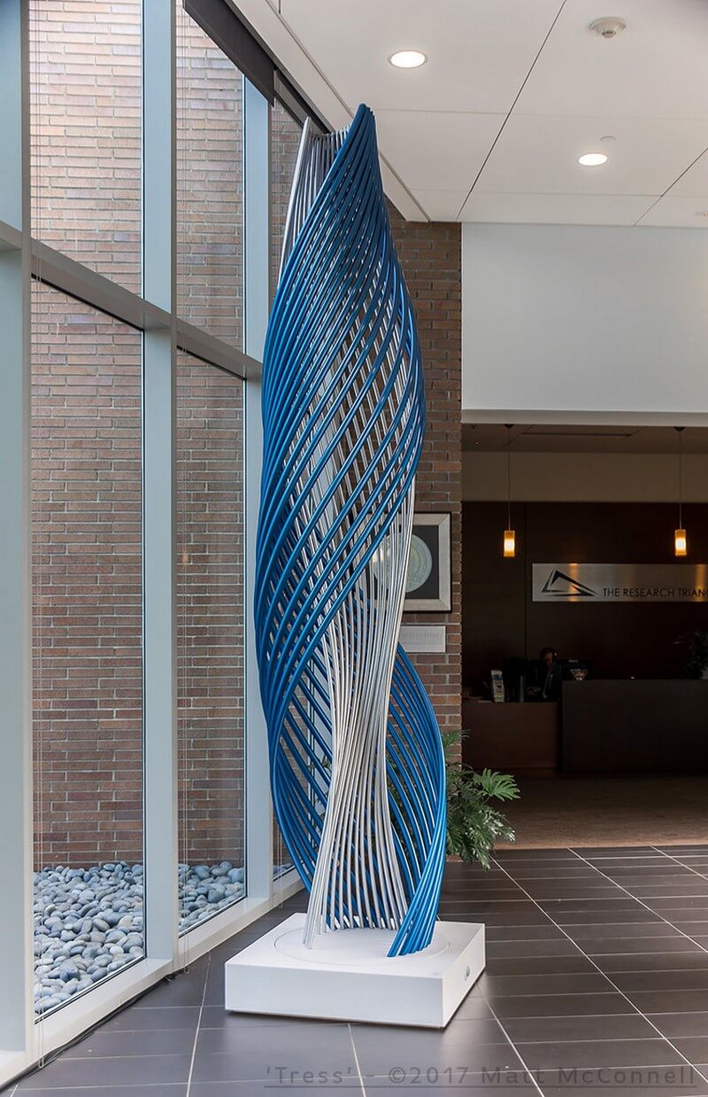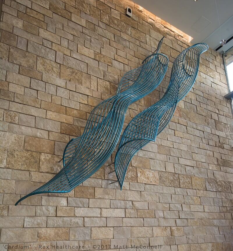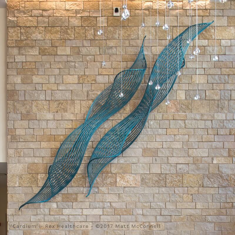 Cardium, made from aluminum with catalyzed urethane finish is a 18′ x 18′ x 3′ sculptural installation which you can find in Rex Healthcare, Heart Center, Raleigh, NC.