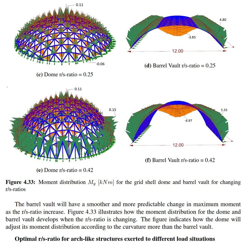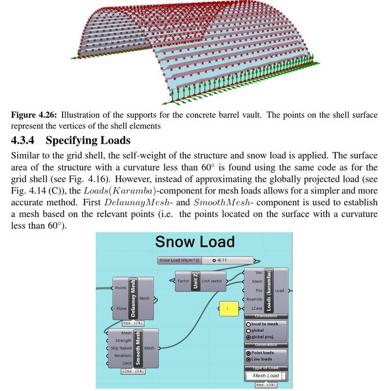 However, the load distributions obtained from the algorithm showed some contradictions with regards to the guidelines in EC and were thus not accounted for in the design. It was illustrated how the shape is crucial for the efficiency and structural behaviour of the shell, and how double curvature gives a more robust structure which is less prone to deflect.