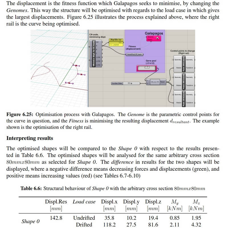 Optimisation of the cabin’s shape was executed through minimising displacements from external loads. Initially the shape showed substantially larger displacements for the Drifted (asymmetric) snow load case from EC compared to the Undrifted (symmetric) case, and the optimised shape displayed an increase in the initial double curvature.