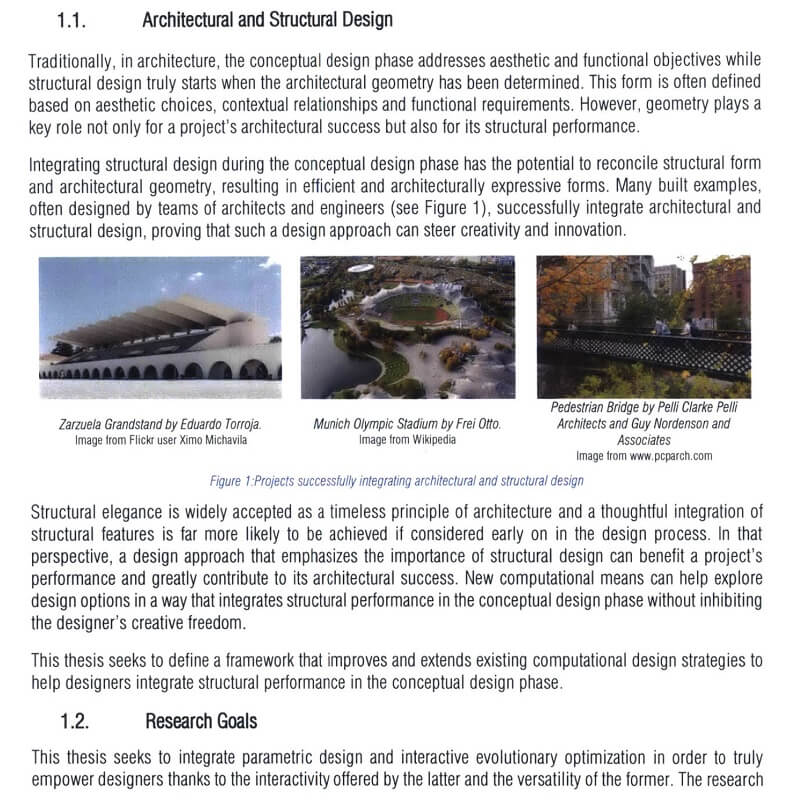 As structural performance is highly linked to architectural geometry, there is a need for computational strategies allowing for performance-oriented structural design in architecture. In order to address these issues, this research by Renaud Aleis Pierre Emile Danhaive combines interactive evolutionary optimization and parametric modeling to develop a new computational strategy for creative and high-performance conceptual structural design.