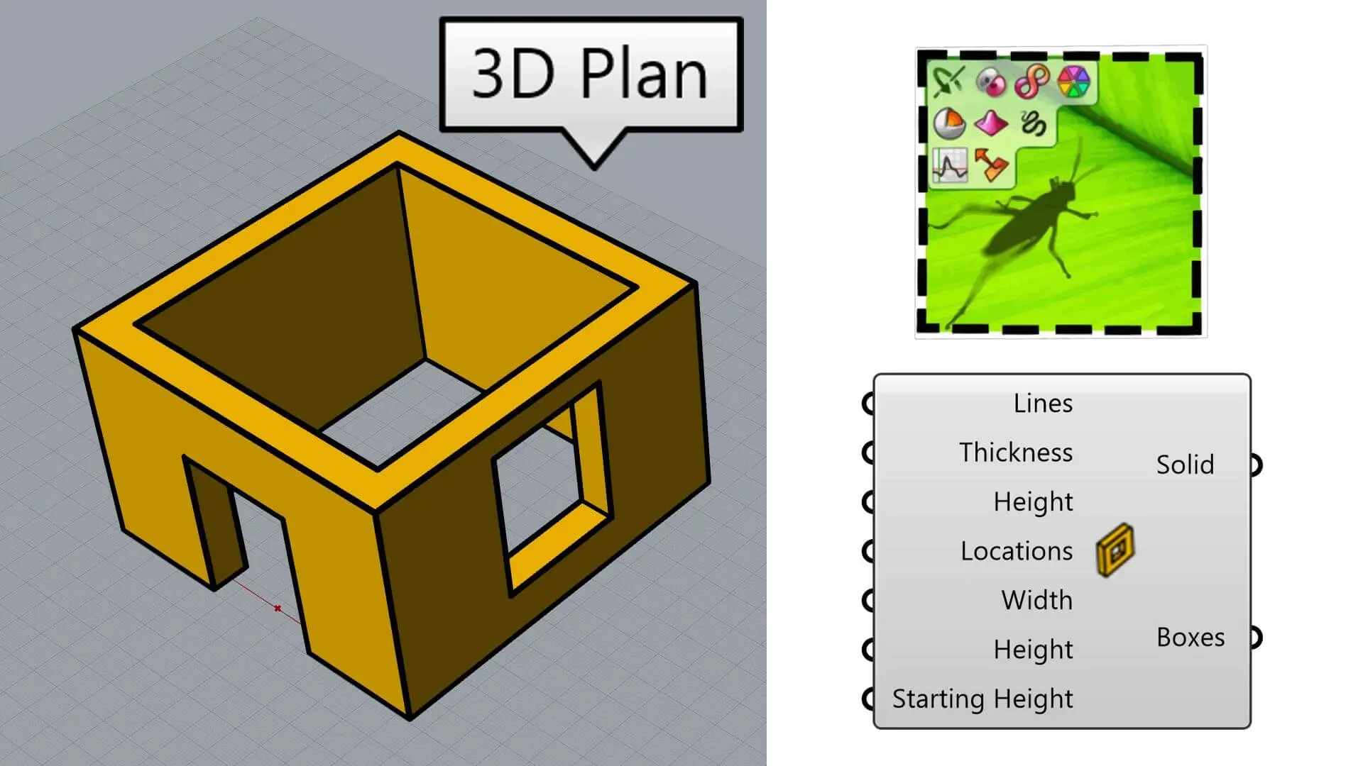 In this Example file you can learn how to make the 3d Plan by using the native grasshopper components.