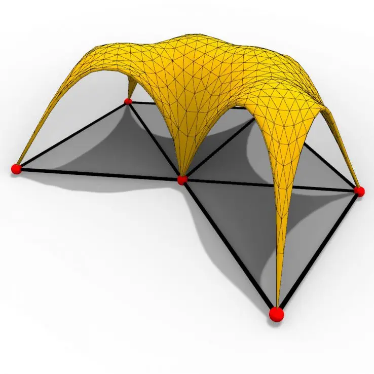 In this Grasshopper Example File, you can design a parametric tensile Structure using the parakeet and Kangaroo plugins.