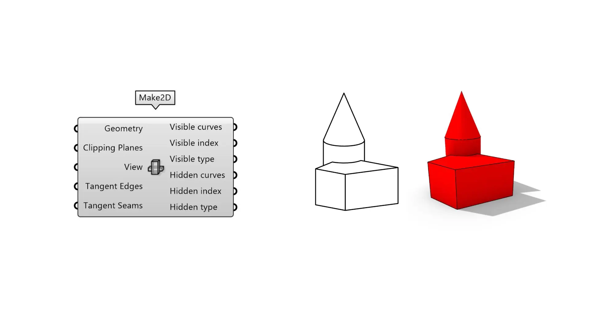 The Make2D component generates a projection drawing from input geometry. However, unlike most Grasshopper components, it does not automatically calculate outputs.