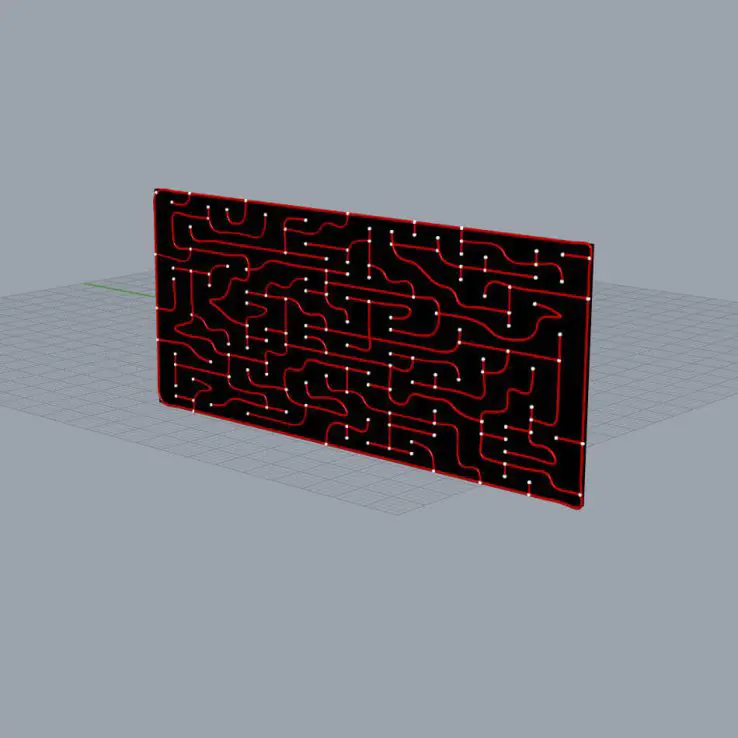 In this grasshopper example file you create a pattern similar to a maze on a mesh and then generate spheres on the vertices.