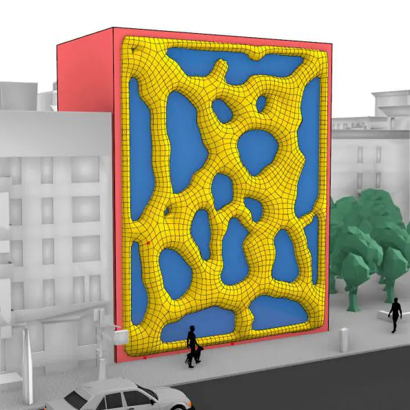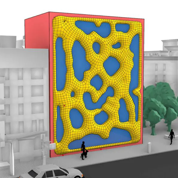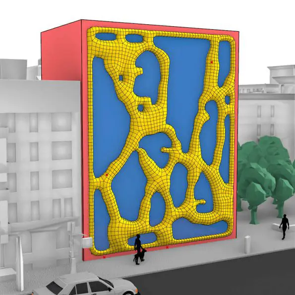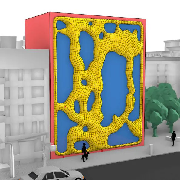 In this Grasshopper example file, you can model and simulate a parametric facade with free-form openings using the mesh relaxation
