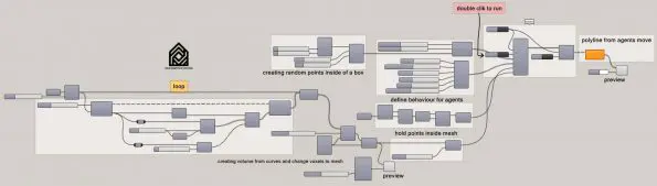 In this grasshopper example file, you can simulate agents, flocking inside a mesh which is generated based on a fractal curve.