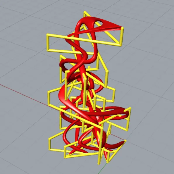 In this Grasshopper example file, you can model an exoskeleton Mesh structure with entwined curves parametrically.