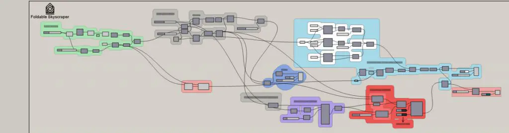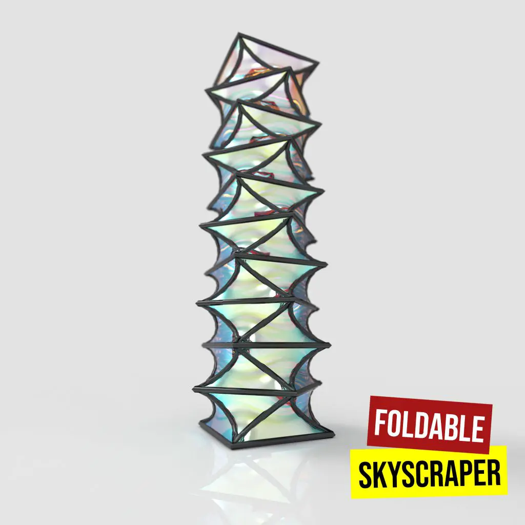 In this grasshopper example file, you can model a foldable skyscraper using the Kangaroo plugin. By changing the Parameters you can fold the main curves.