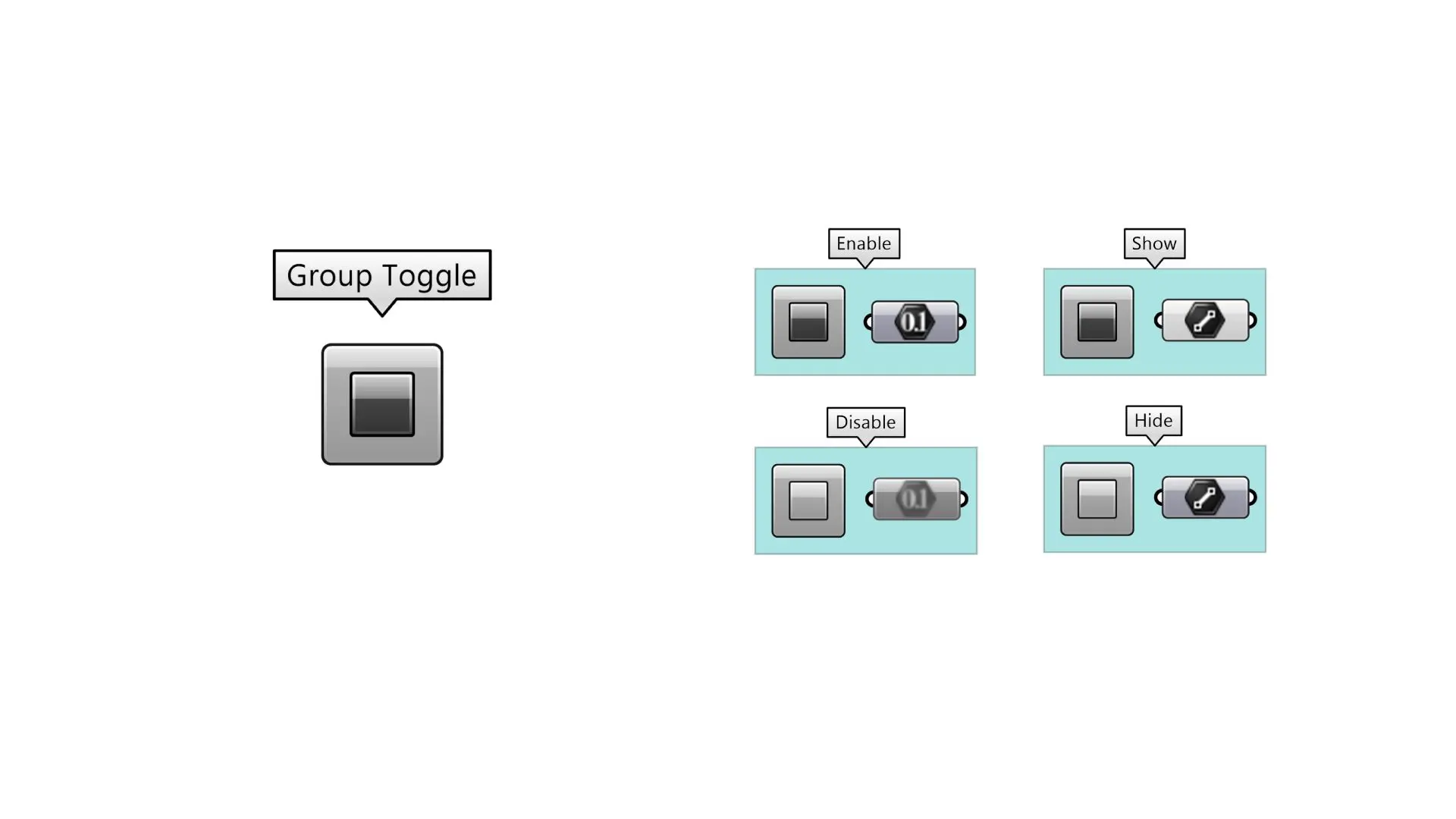 This is a special component from the Metahopper plugin—a simple button with no inputs or outputs. To use it, add the button to a group of components. Pressing the button enables or disables all other components in the group.