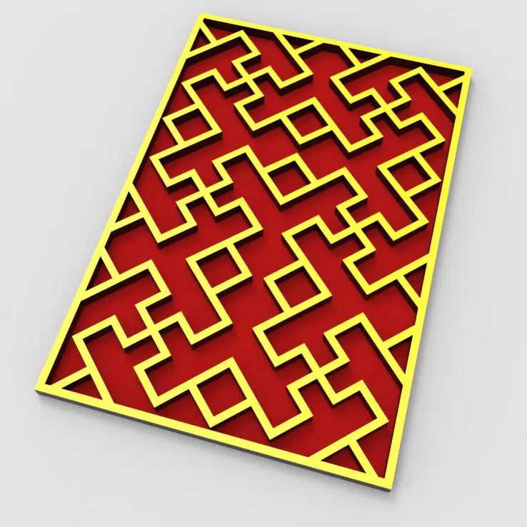 In this definition we have made a pattern based on a rotating and scaling square grid which the center connects to the middle of the edges and then by following a geometrical algorithm we reach the final pattern.