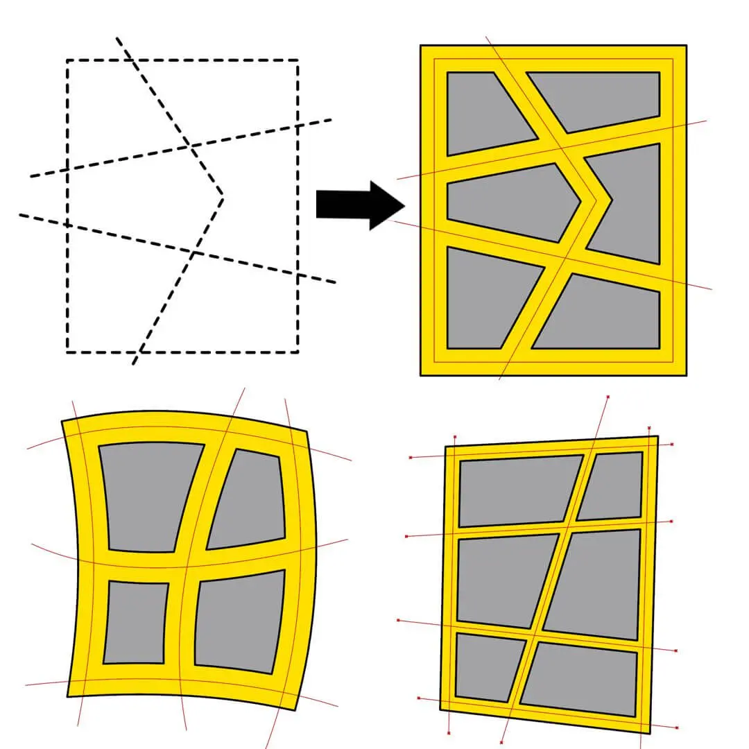 In this Grasshopper example file, you can model and simulate a parametric facade with free-form openings using the mesh relaxation