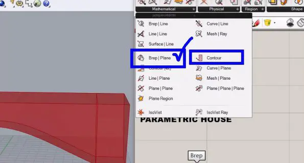 The next step is to produce a series of sections on this form. In the Intersection > Mathematical we have two options: “Contour” and “Brep|Plane”. Here we use Brep|Plane. The Contour component needs a starting point and a distance so if we don’t have the exact length of the bench and don’t set the distance according to the length, the last section doesn’t align with the other side of the bench, and we are going to have a bigger or smaller distance between our sections in the end.