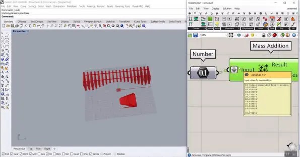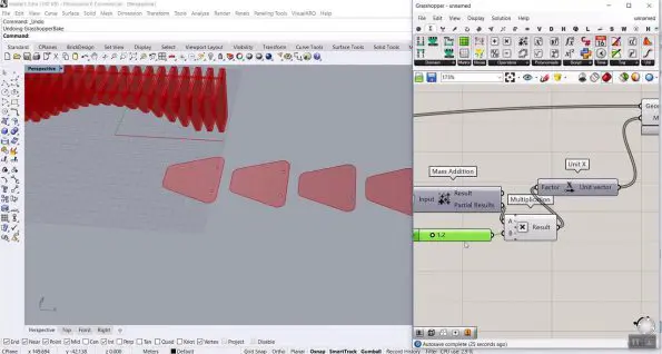 Now we can move those oriented curves in the X direction according to the partial results we get from the Mass Addition component multiplied by an arbitrary number.