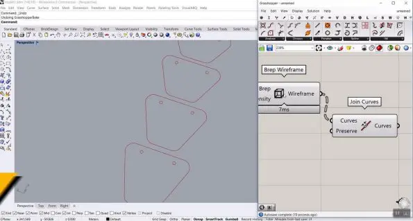 To have the curves ready for let’s say laser cutting we are going to use Brep Wireframe: Surface > Analysis, and also use Join Curves component: Curve > Util to have just 3 curves in each section.