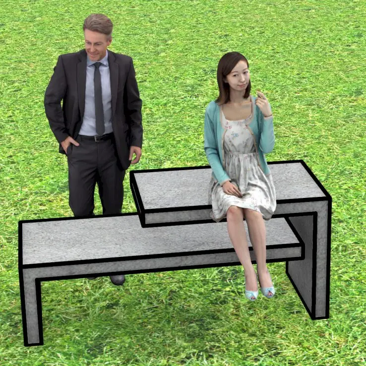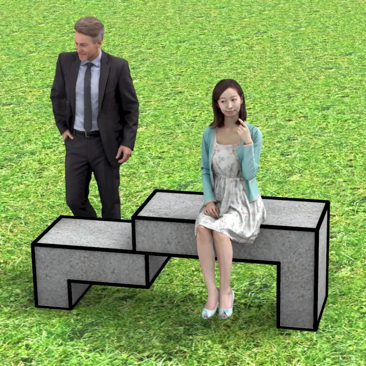 In this Grasshopper script, you can design a parametric bench by defining the length factor, thickness, and depth of two opposite elements.