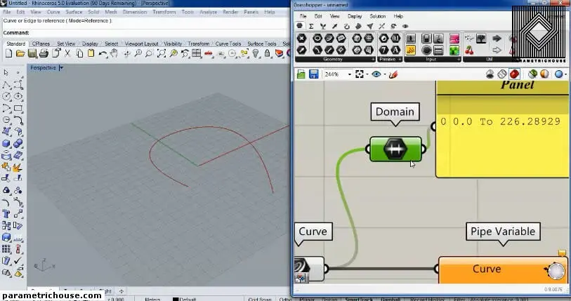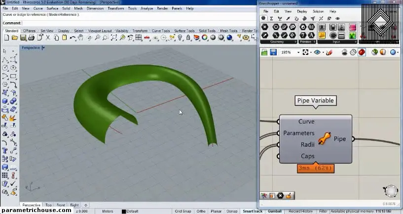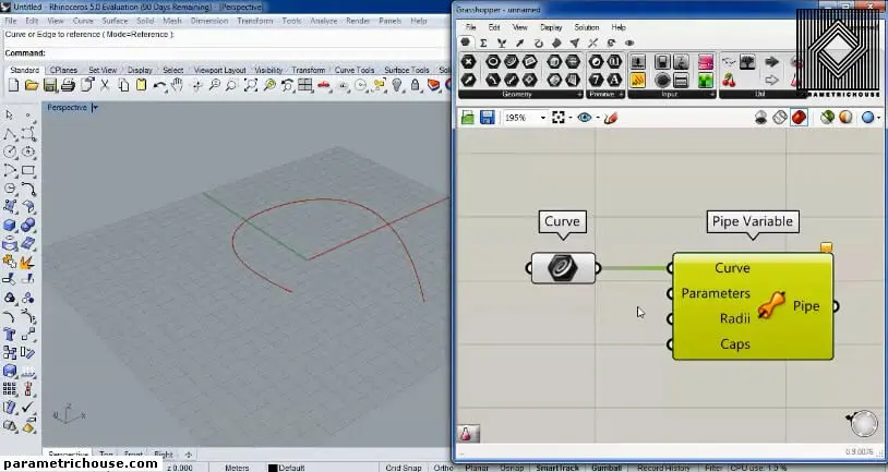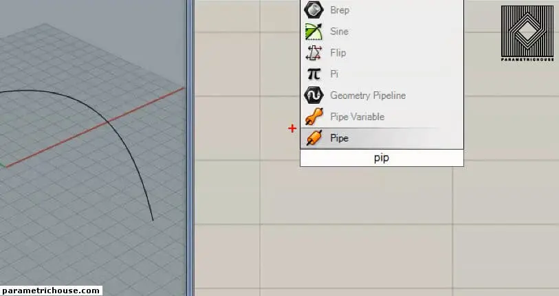 First of all, we can find the pipe variable by double-clicking on the canvas and searching “pip”. There are two different tools for making a parametric pipe. “Pipe” will produce a single radius pipe. “Pipe Variable” will give you more freedom on the pipe by letting you choose the location and the radius.