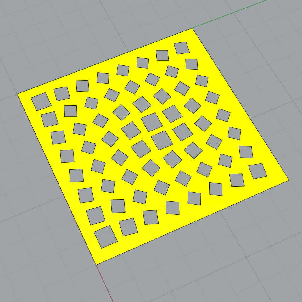 In this premium python script you can create a parametric pattern based on the rotation of a series of squares inside a panel in grasshopper.