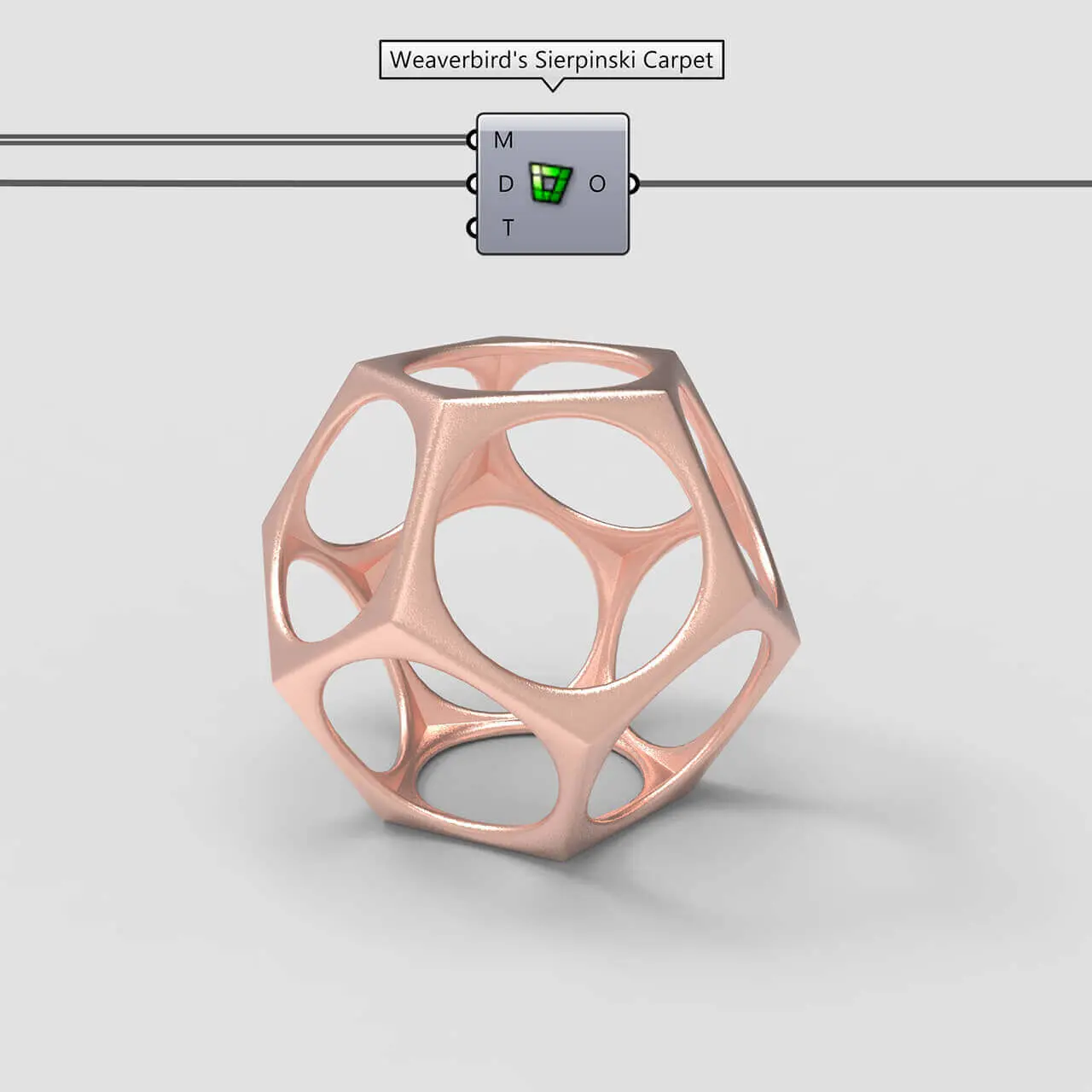 In this grasshopper definition you can use the “Sierpinski Carpet ” from the weaverbird’s plugin to model a smooth 3d shape.