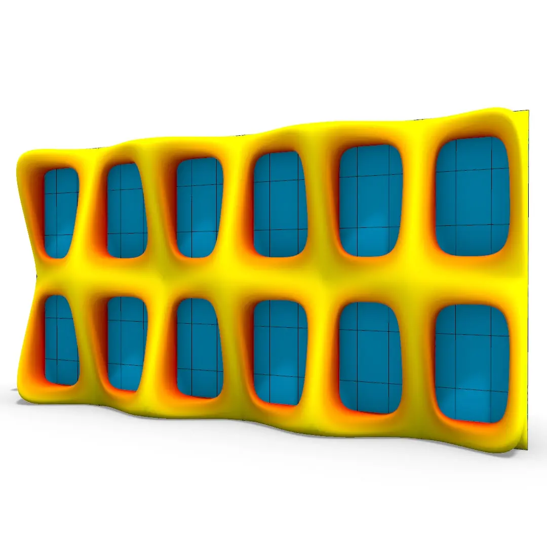 In this Grasshopper example file, you can model and simulate a parametric facade with free-form openings using the mesh relaxation