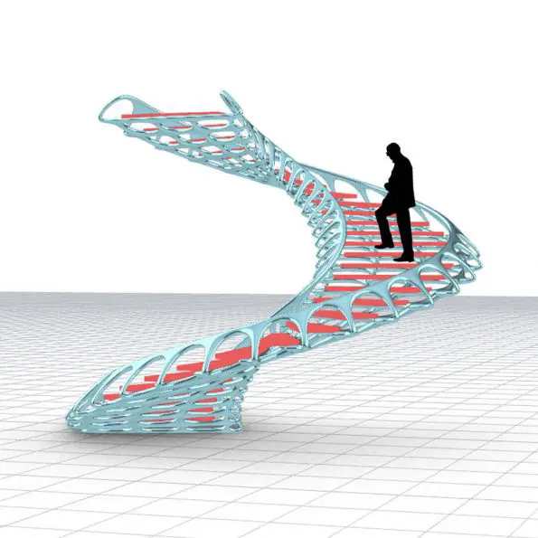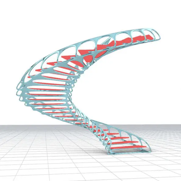 In this grasshopper example file, you can model a parametric spiral staircase and then use the weaverbird plugin to turn it into a parametric organic stair.