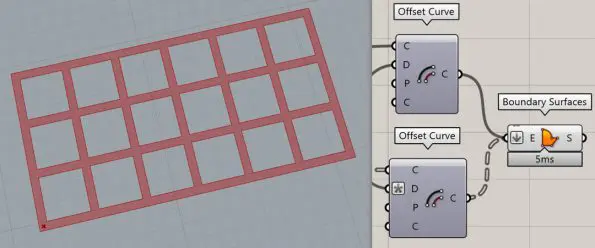After offsetting the border and the cells we can use the “Boundary Surfaces” component to convert them into a single surface.