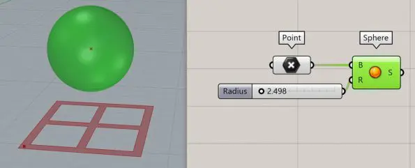 Now it’s time to define a parametric base surface for the projection. This surface will define the curvature of the final form. For this example and to make it as simple as possible we have used a parametric sphere. First, we will use the “Sphere” component and give it a center and radius.