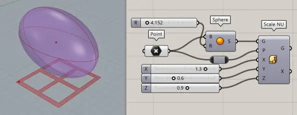 Now we can use the “Scale NU” component to scale the sphere in X, Y, and Z directions differently. This will give us more control over the final result.