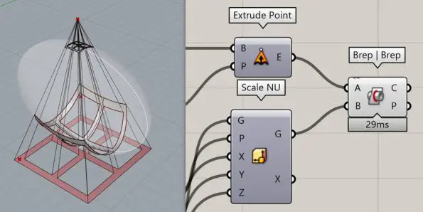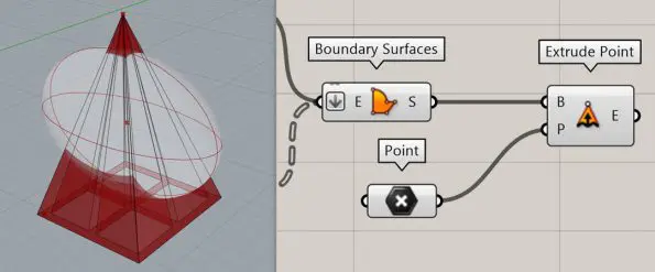 To find out which form produces the desired shadow we can extrude the shadow to a point using the “Extrude Point” component.