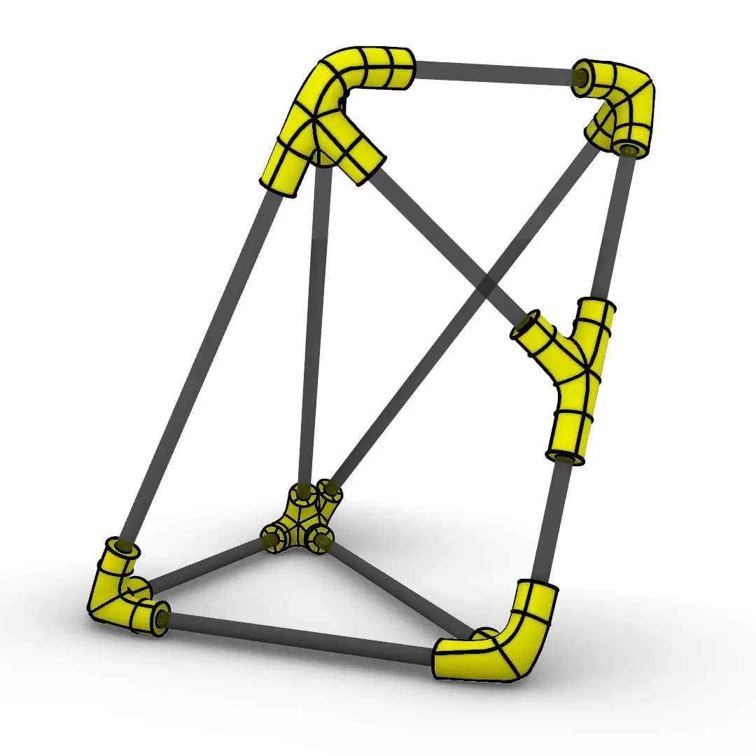 In this Grasshopper Script, you can convert a series of Lines or Curves into a Pipe+SubD connection.