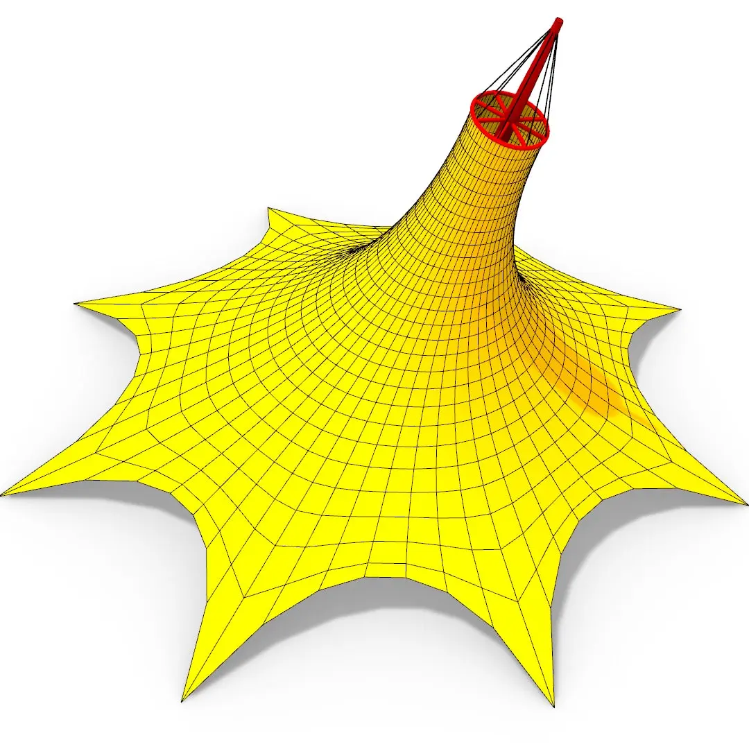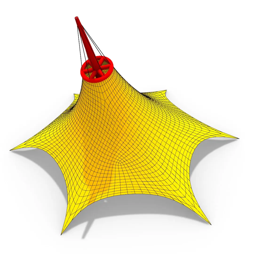 In this Grasshopper example file, you will design a parametric tensile structure using the Kangaroo plugin by defining the orientation of the pole columns and the position of the upper ring.