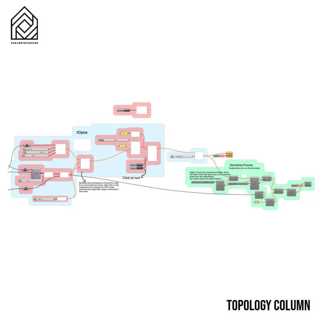 In this grasshopper example file you can simulate a parametric toplogy optimization for a column using the Topos Plugin.