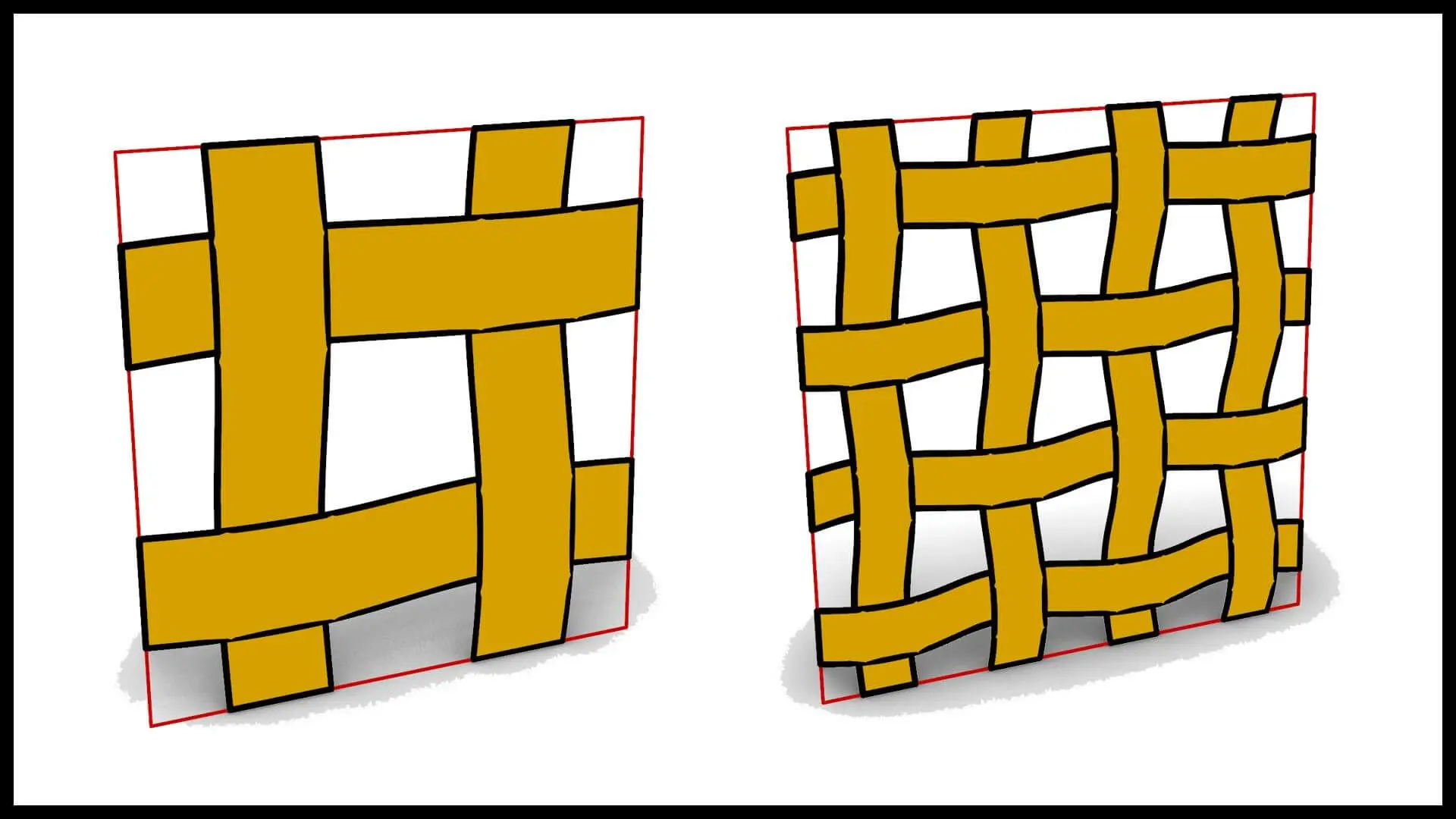 In this grasshopper example file you can convert a rectangle to a weave pattern easily by defining the division , offset , deformation and mesh colour.
