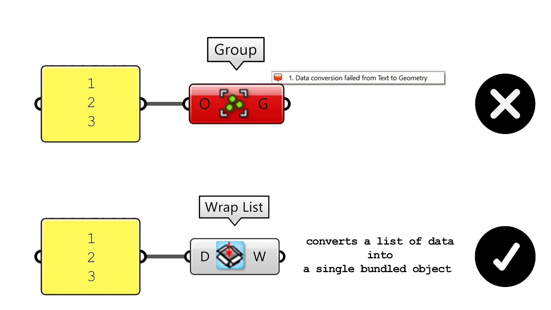 The “Wrap List” component in the Metahopper plug-in converts a list of data into a single bundled object, simplifying wire management and ensuring all data types are handled seamlessly.