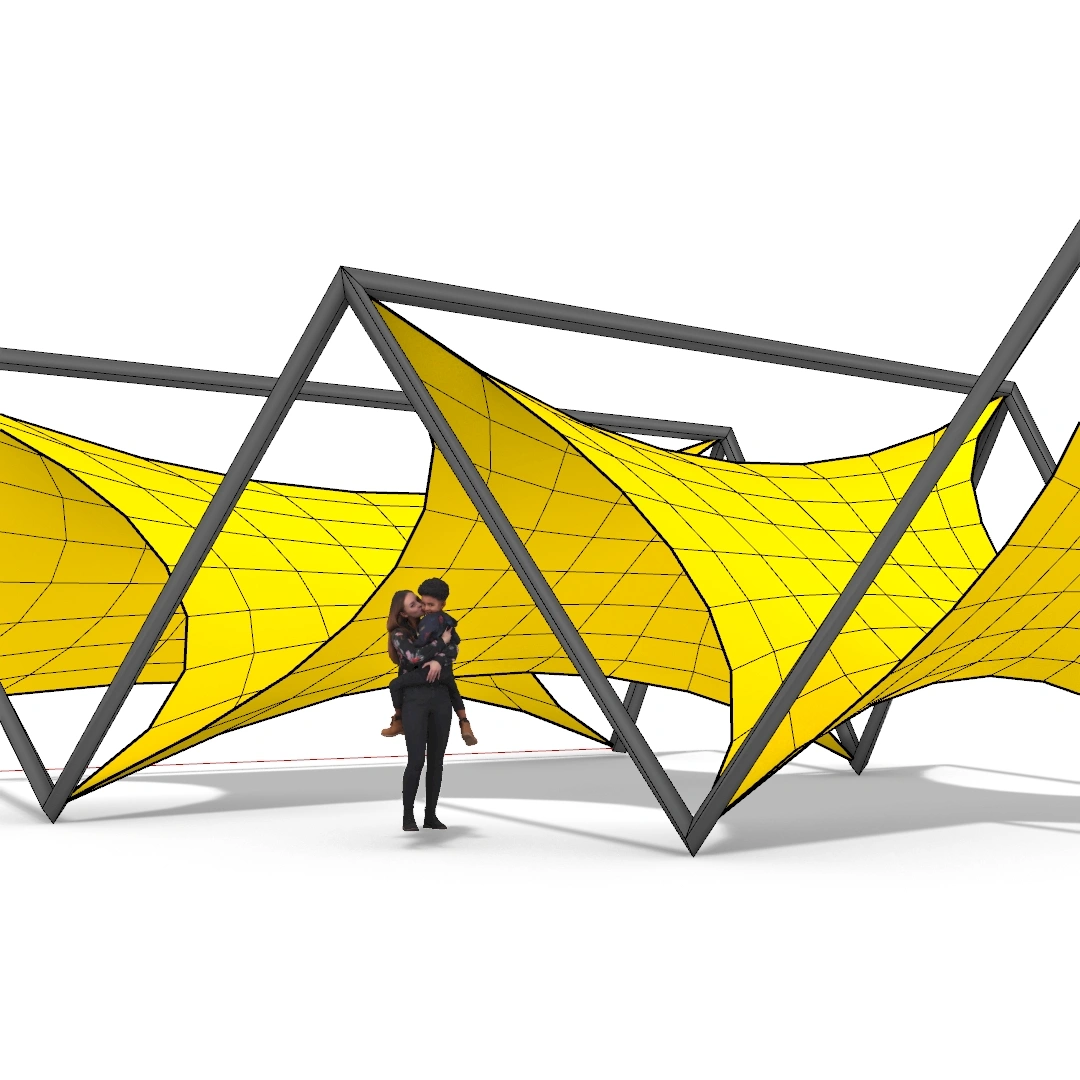 In this Grasshopper example file, you’ll learn how to model and simulate a zigzag tensile entrance/corridor using Kangaroo and dynamic