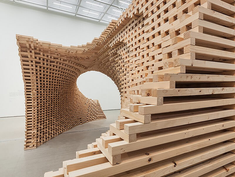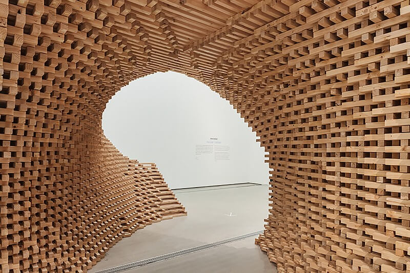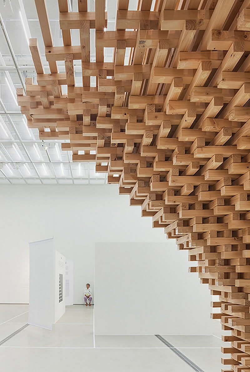 Part to Whole is ‘structure’ constructed by the set of parts. It shows the qualities of tectonics through weaving and stacking the wooden modules. Likewise the traditional wooden structure of Korea, it makes the whole stable by using the quality of materials, and maximizes tectonics through the methods of construction.