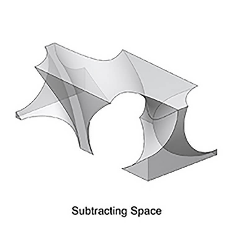 Part to Whole by HG-A | LIVE COMPONENTS is ‘space’ defined by the whole came from the flow of repetition. The set of circles moving along the curve constructs continuous void space. It digs the specific volume out of the cube, which maximizes available space and minimizes materials at the same time.