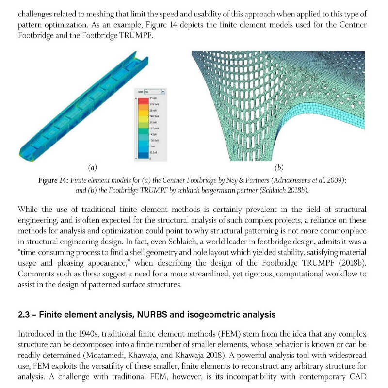 Used as a way to invigorate an otherwise homogeneous architectural environment, even intricately patterned surfaces with highly complex geometries can be realized thanks to recent advancements in digital fabrication technologies. Most recent work on the integration of pattern design and structural optimization lacks general structural engineering applicability and does not address the incompatibility of traditional analysis methods with contemporary CAD environments.