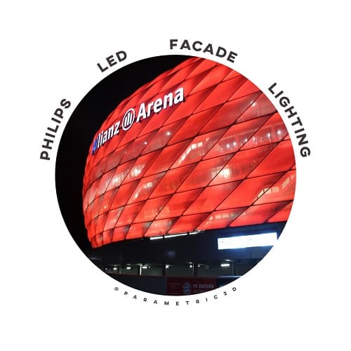 FC Bayern Munich kicked off the season in spectacular style: Philips, the global leader in lighting, and the German soccer champion presented a new LED façade lighting at the Allianz Arena for the first time on.The entire innovative Philips system can be controlled digitally and is capable of reproducing 16 million colors. This makes Allianz Arena, the ‘Star of the South’, Europe’s largest and Germany’s first stadium to feature dynamic lighting across its entire facade. More than 300,000 LED lights – over an impressive surface area of 26,000 square meters — make the stadium façade’s inflatable outer membrane shine brilliantly. Compared to the previous system, the new technology saves more than 60 percent on electricity and approximately 362 tons of CO2 per year.