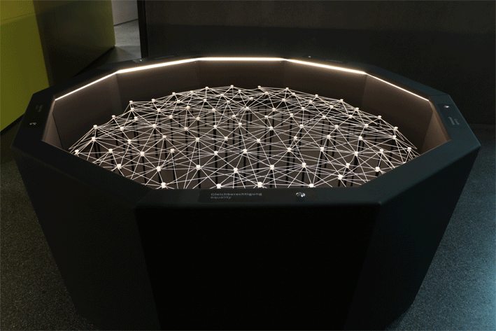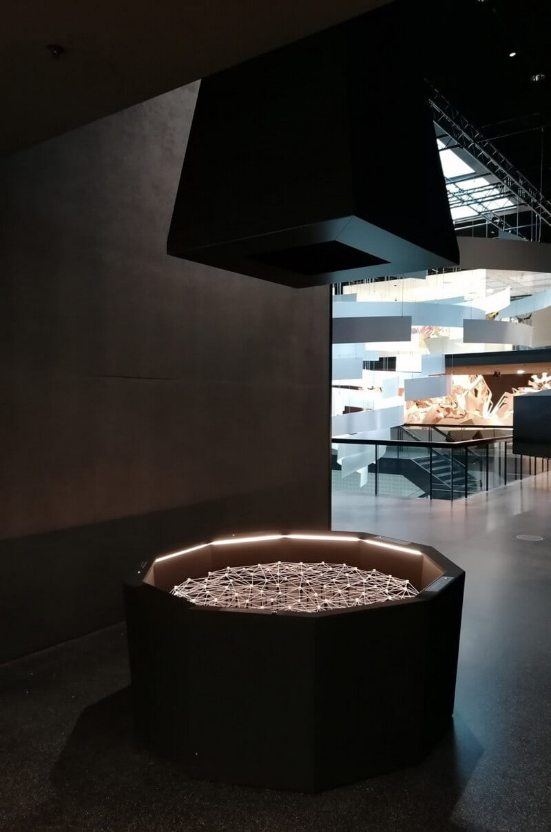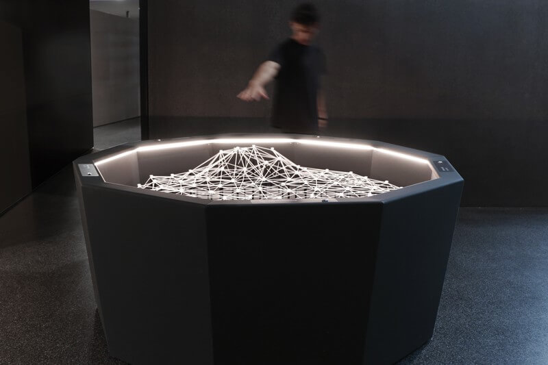 For the newly established museum Futurium in Berlin, mischer’traxler studio was asked to develop two kinetic projects that deal about interconnectivity within our social environments. Inspired by woven networks that perfectly represent how each and everyone is indirectly connected with everyone else, both realized projects utilize real thread to make these connections moveable and visible.