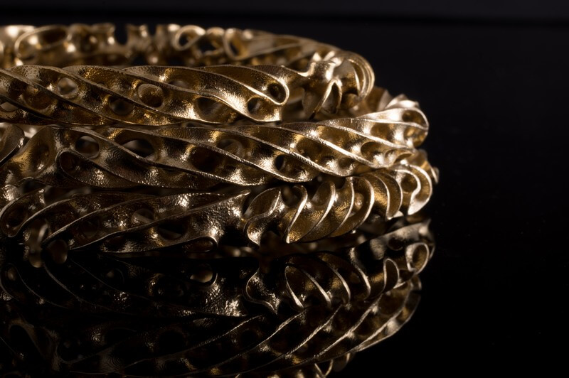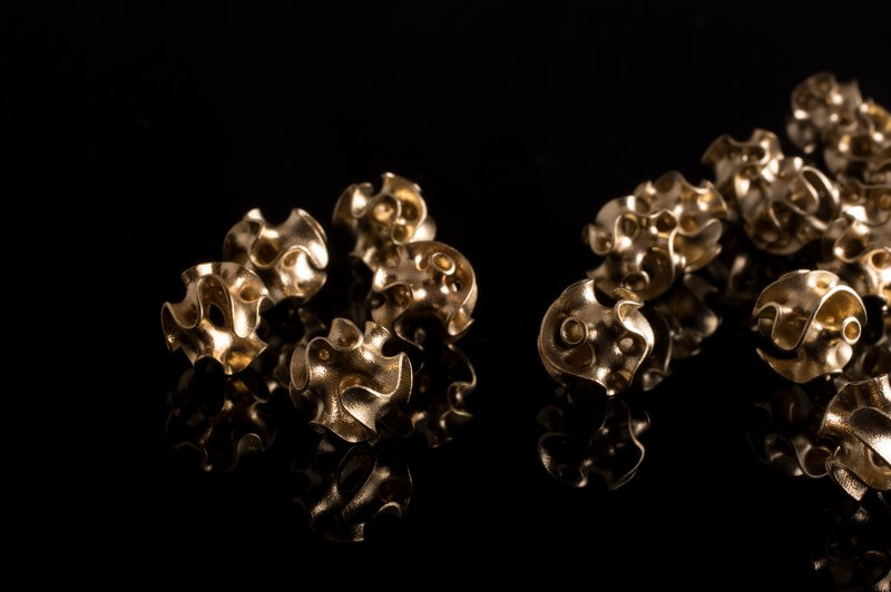 The 3D-printed ceramic jewelry is the result of more than two years of material experiments and research with Formlabs. By combining new technology and traditional craft, ceramic 3D-printing lets us create extremely intricate forms could not be made before. The pieces are finished by hand: sanded, glazed, and fired twice in a kiln up to 2350F, creating vitreous ceramic jewelry with a sumptuous glazed finish.