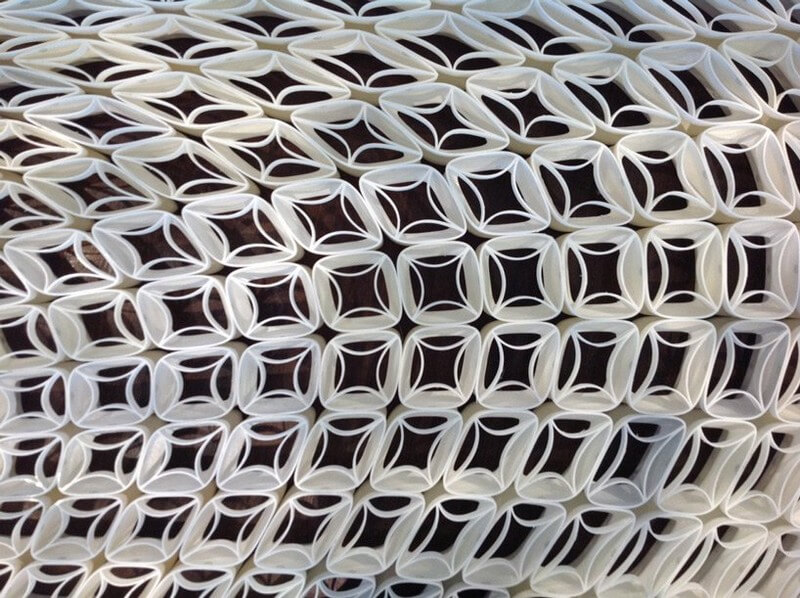 Each of the 4,760 ‘stones’ is made of PLA (polylactide) plastic, a material which is both biodegradable and commonly used for 3D printing technology. The construction allows for limited material usage, with pieces attached by custom hexagonal screws. Supporters to the project participated by either printing a stone on their own machine, or otherwise by ‘adopting’ a stone through financial contribution.