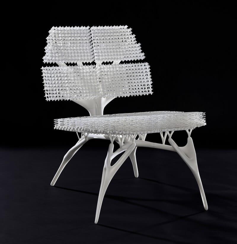 Nature may seem at first glance random and free-flowing, but if you look on a microscopic level, you can find symmetry and geometry in almost all cell structures. The salient observation about the natural world’s smallest lifeforms provides designer Lilian van Daal the framework for exploring the functional forms of unicellular micro-organisms and turning it into, Radiolaria #1, a most unique 3D printed chair made with 100% recycled polymer powder pieces without a drop of glue.