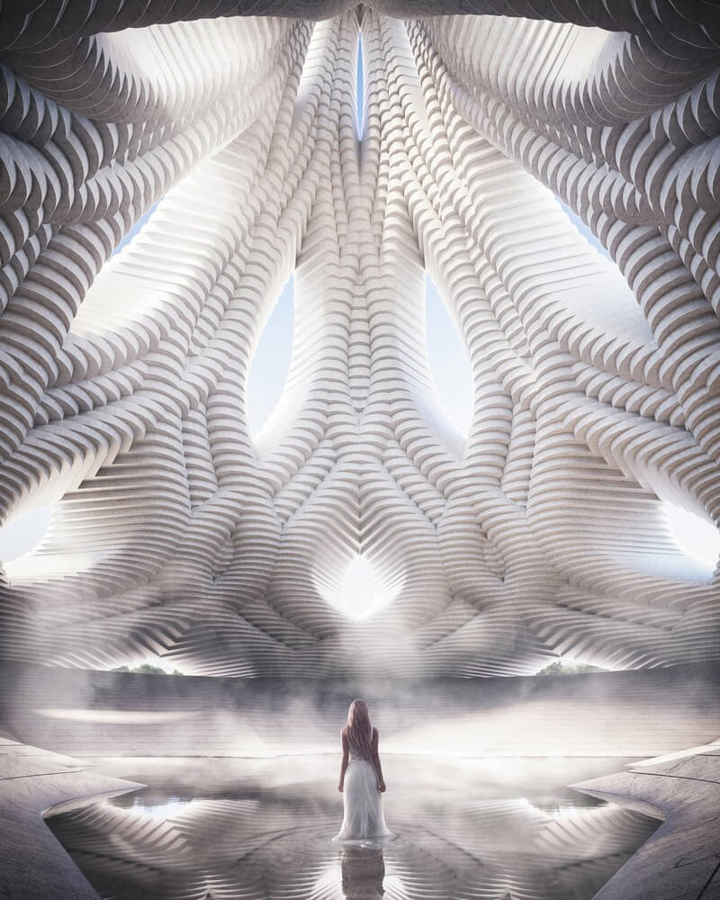 The form of the “Rain Water Catcher” true to its concept is algorithmically derived through fluid, flowing lines and geometries that create an interlaced pattern defining the tower as an extension of the landscape. Usage of cutting edge digital design and optimisation tools aims to streamline the process from ideation to reality, minimising wastage and fostering respect for the environment through the use of sustainable materials. The “Rain Water Catcher” aims to address the “role and importance of water,” “placemaking,” “interaction,” “modern technologies” at the intersection of art, architecture, and engineering.