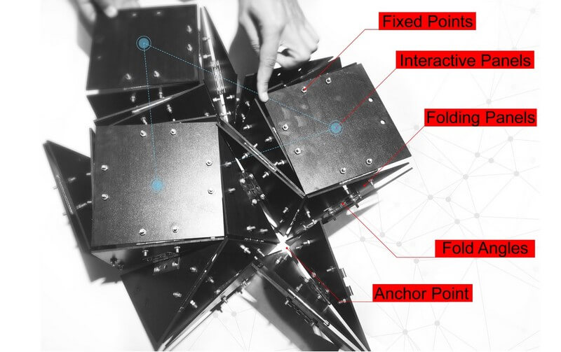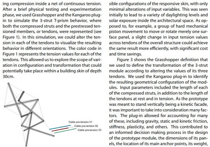 By combining concepts stemming from both tensegrity structures and folding mechanisms, authors develop a prototype that changes dynamically to produce varying facade patterns and perforations based on sensor-network data and feedback. They use radiation sensors and shape memory alloys to control the prototype mechanism and allow for the required parametric adaptation.