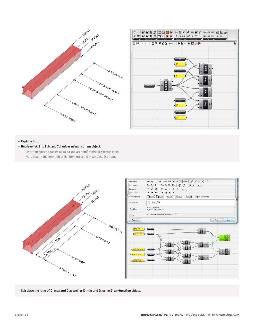 Main goal of this project by woo jae sung is to make successive bridge-like structures based on parametric idea using Rhino Grasshopper. The first step is to make a single component that reacts to the user inputs. The second step is to replicate the single component to get multiple components which behave under the same logic. The third step is to make a graph variable which controls multiple point inputs. The last step is the application of the component system to the specific site condition.
