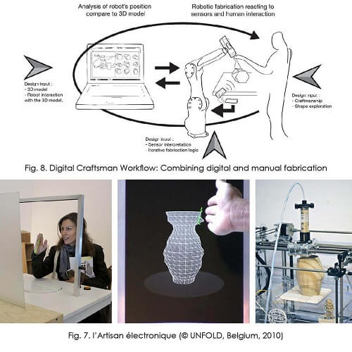 In addition, complex fabrication processes that use non-static materials, e.g., clay or polymer, require more precise and sensor feedback to enable tracking, fine-tuning and synchronization between material, machine and design. Sensors thus enable real-time feedback loops that have the potential to radically change the design process.