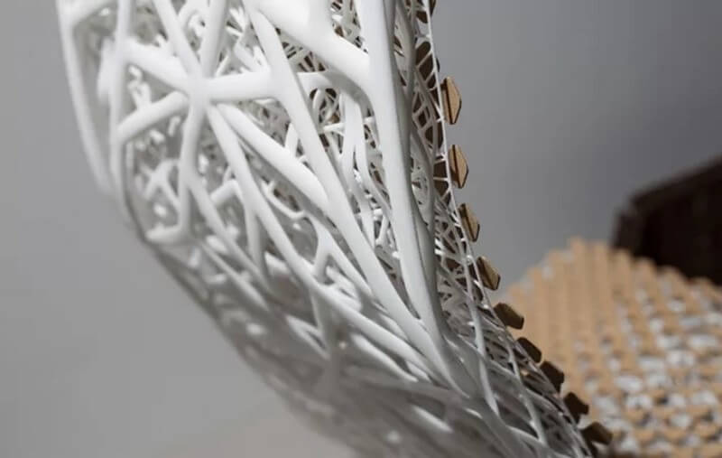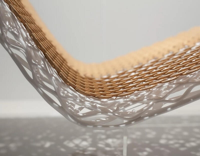 The project Shapes of Sweden was developed for the Volvo Design Challenge that Lilian van Daal won in 2015. For this challenge she dived into the Swedish environment and the brand proposition of Volvo. She merged the essences of these together with her biomimicry approach. After an extensive material research with several bio-materials she concluded with a 3D printed structure out of pine tree that serves some essential functions of a chair: flexibility, resilience and stability.