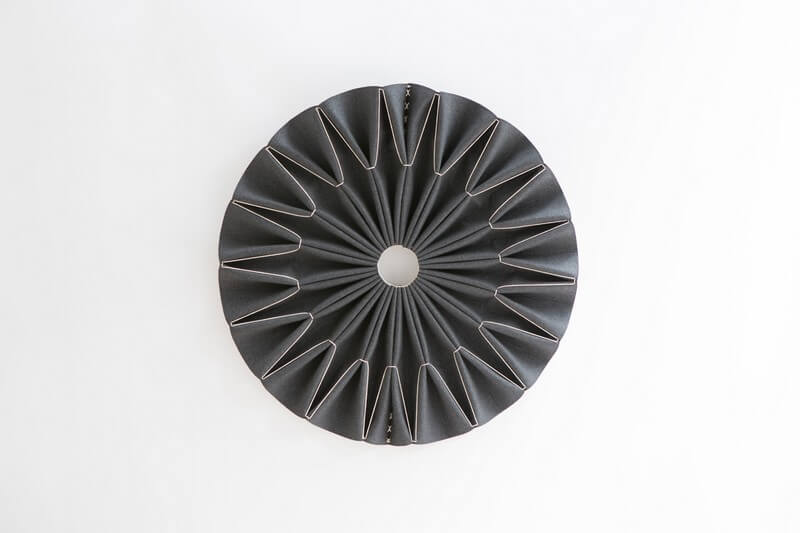 The pendants can be hung on the walls or from the ceiling where a light source can be added for additional functionality. There are two versions, BuzziPleat Ripple (top) and BuzziPleat Edel (bottom), and each one comes in two sizes that can be fixed to the wall or suspended.