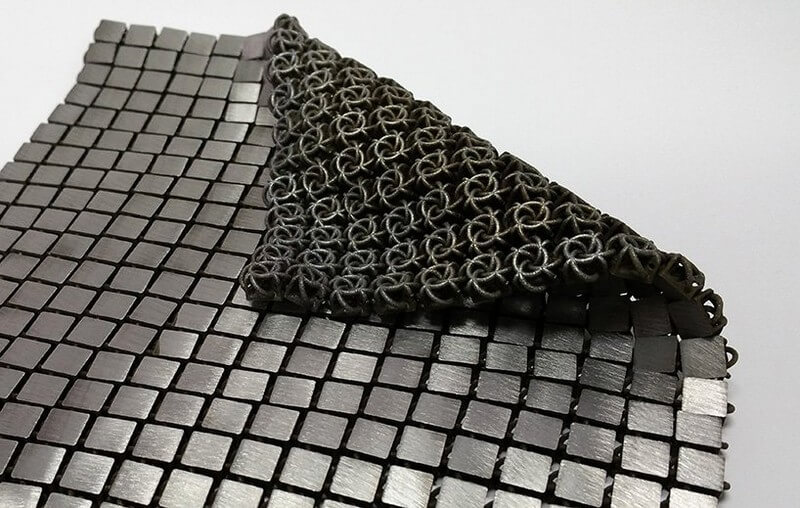 NASA are stepping straight into the future of textiles with their 4D printed ‘space fabric’—a metallic material intended to be used like ‘chain mail’ to protect astronauts and spacecraft alike during their missions. although made of metal, the material remains foldable and retains the ability to change shape easily, making it apt for wrapping around spacecraft, or even to fabricate astronaut spacesuits. the material could even be used to keep machinery warm when exploring chilly locations like jupiter’s ice ‘europa’ moon.