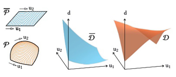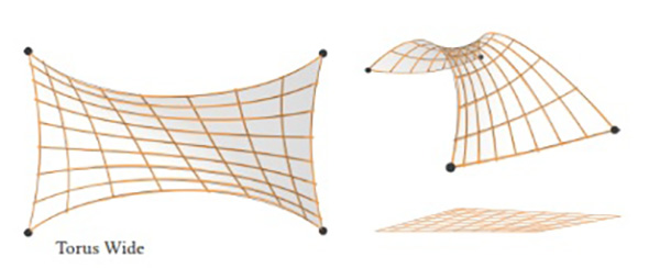 Elastically Deployable Surfaces. An interesting way to deploy surfaces is to utilize the energy stored in planar configurations in order to approximate shapes, for instance using prestressed latex membranes in order to actuate precomputed planar geometric structures into freeform shapes, or to predefine flexible micro-structures which deform to desired shapes if set under tension.